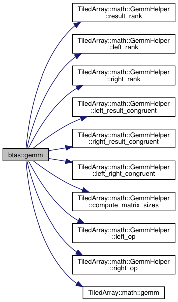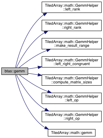 | btas::Tensor< T, Range, Storage > | gemm (const btas::Tensor< T, Range, Storage > &left, const btas::Tensor< T, Range, Storage > &right, T factor, const TiledArray::math::GemmHelper &gemm_helper) |